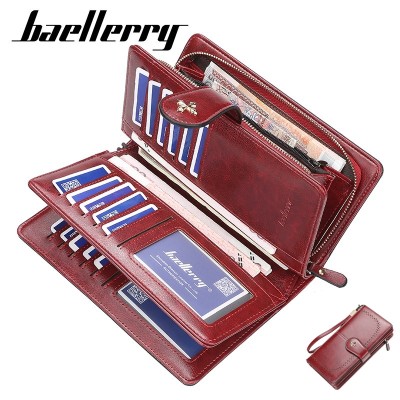 RFID防磁錢包女 新款歐美女士錢包油蠟皮錢夾皮夾大容量手拿包 大容量長夾 多卡位長夾 皮夾