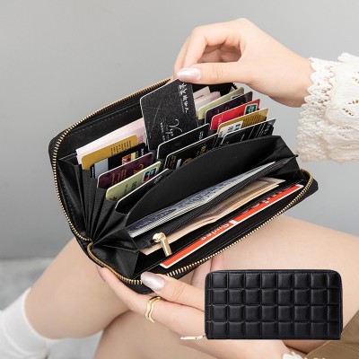 新款女士錢包 新款長款錢包女生菱格雙層拉鍊時尚百搭手拿包 雙層手拿包 手拿包女生 皮夾女長夾 大容量長夾 多卡位長夾