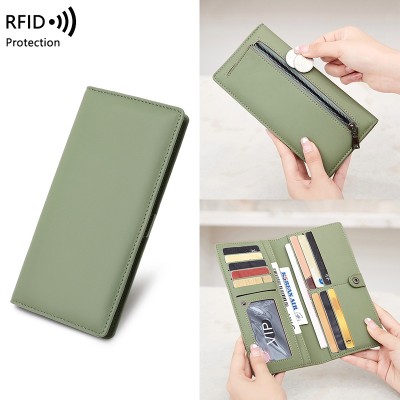 RFID防盜刷PU素色錢包女拉鍊搭扣卡包簡約超薄長款錢包