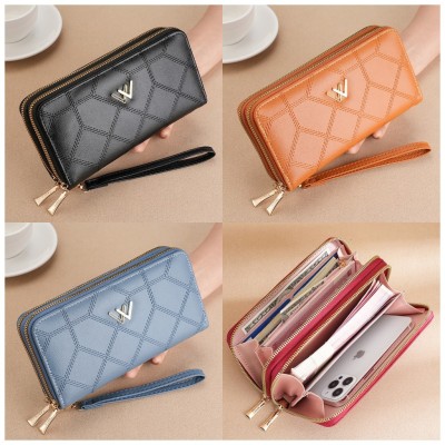 新款錢包女生長款雙層拉鍊錢夾 手拿包女 皮夾長夾 大容量長夾 多卡位長夾 皮夾