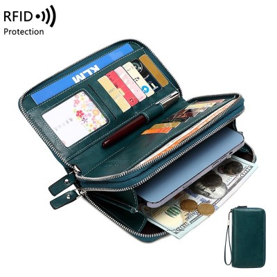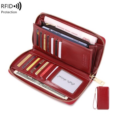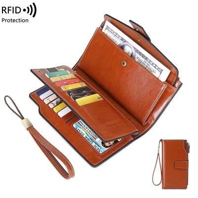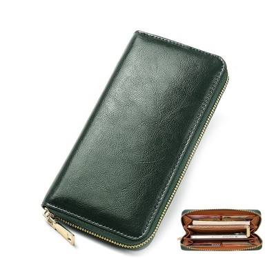 新款RFID防磁女士錢包 柔軟油蠟皮手拿包女生包 多卡位長夾