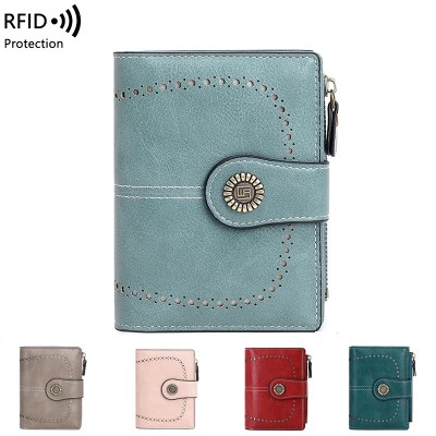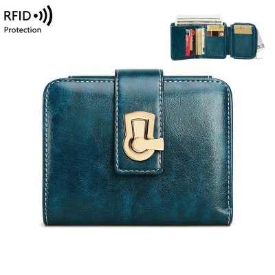 RFID防磁錢包 新款油蠟皮錢夾多卡位零錢包 錢包短夾 皮夾短夾 錢包女 錢包女短夾 錢包短夾女生 簡約短夾