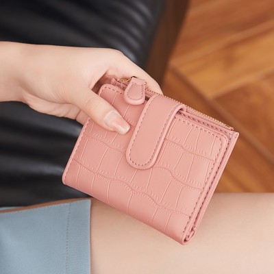 新款短版女士錢包鱷魚紋多卡位PU皮素色簡約大容量 零錢包 卡包
