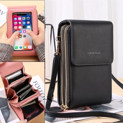 可觸屏手機包女單肩斜挎小包素色簡約手機袋韓版手拿包 女生包包 零錢包 手機包包