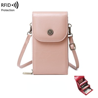 熱銷RFID手機包女斜挎 新款油皮豎款手機錢包