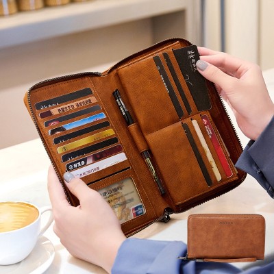 風琴護照存摺包日式通帳本rfid 本革手帳本真皮女士長款錢包 大容量長夾 多卡位長夾 皮夾